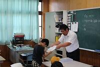 また、式後は、生徒指導主事の先生から、子どもたちが交通事故や水の事故に遭わないように注意することやインターネットの正しい使い方など夏休みの過ごし方について話があり、子どもたちは、しっかりとした態度で話を最後まで聞いていました。