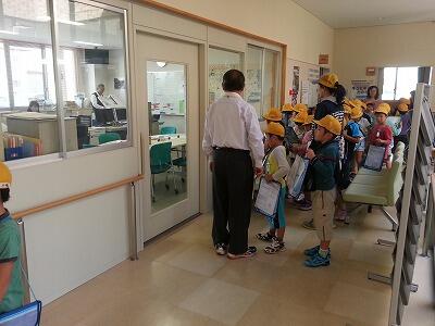 子どもたちは真剣に館長さんの話を聞きながら、プリントに一生懸命メモをしていました。その後、公民館の中を案内してもらいました。公民館内の調理室や図書室など目をキラキラさせながら見学する子どもたちの様子がとても印象的でした。地震や台風の時に避難場所になることを学びました。