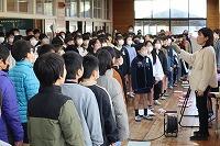 校長先生からは、節分の豆まきにちなんだお話がありました。「人間の誰でももっている心の中にある「弱い心」や「ずるい心」を追い出してほしいという呼びかけに、子どもたちは自分自身を振り返りながら聞いていました。
