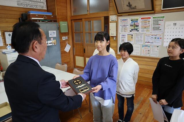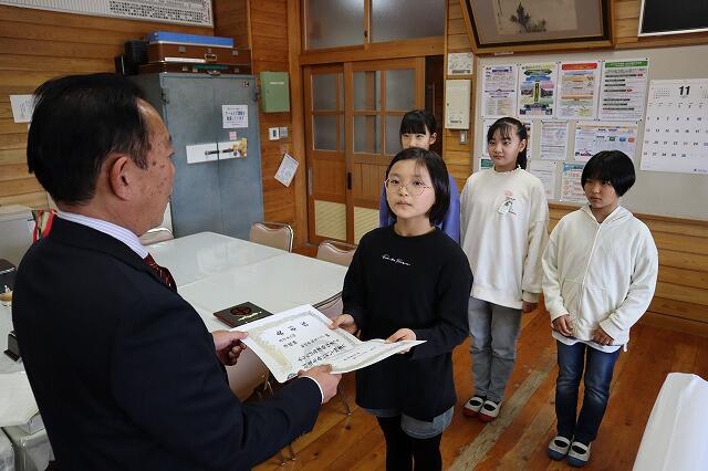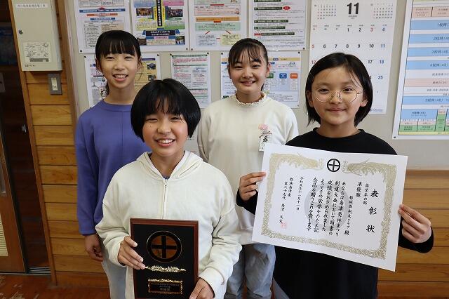 都城西剣友クラブの6年 甲斐聖織さん、工藤瑠桜さん、5年 新留和奏さん、三成美嘉さんの4名が11月11日(土)に行われた「島津発祥まつり剣道大会 高学年の部」で準優勝したことを報告に来てくれました。