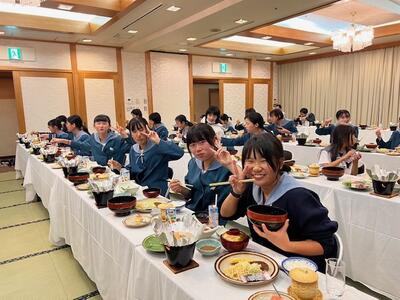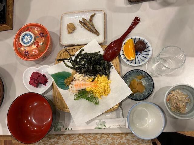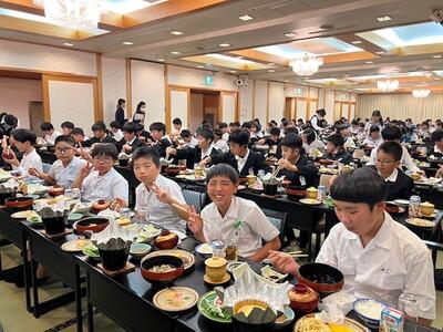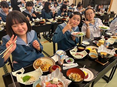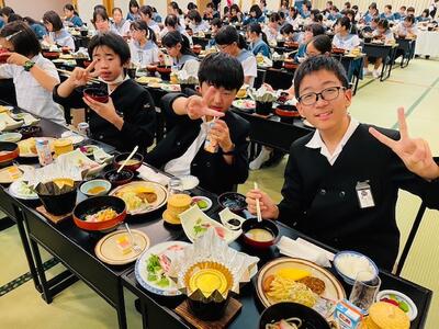 昼食は、鹿児島名物の鶏飯です。子どもたちは、ご飯おかわりしている児童もいました。