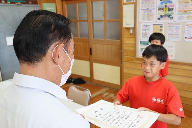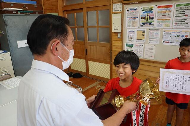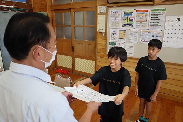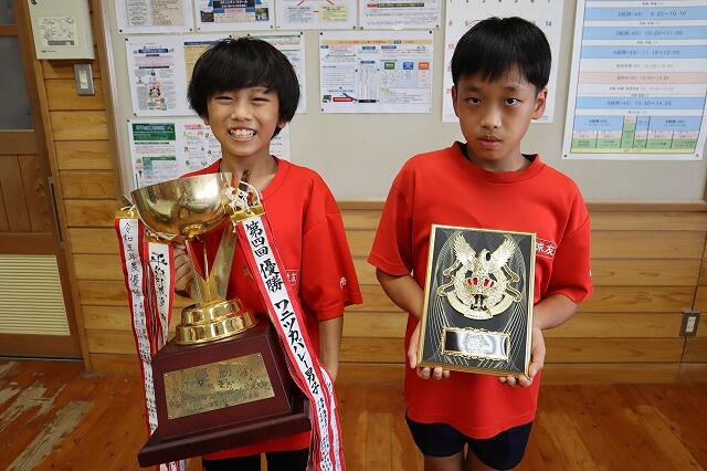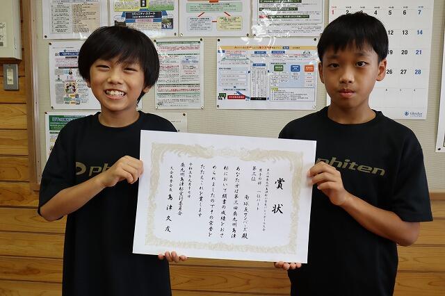 バレーチームの南球友サンバーズに所属する 冨永 琉心さん(6年)、西野 泰心さん(5年)の2名が,8月6日に行われた「第23回南九州三県小学生バレーボール交流大会」、9月17日に行われた「第3回南九州島津杯小学生バレーボール大会」の結果を報告に来てくれました。