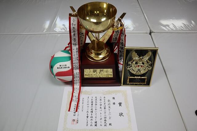 第23回南九州三県小学生バレーボール交流大会の表彰です。大会の成績は、優勝でした。