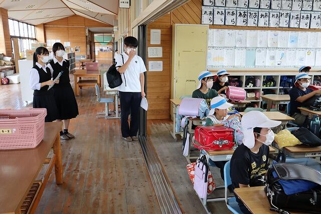 その後、6年2組の帰りの会の様子を参観し、6年生の児童に学校生活のことをいろいろと質問をしていました。