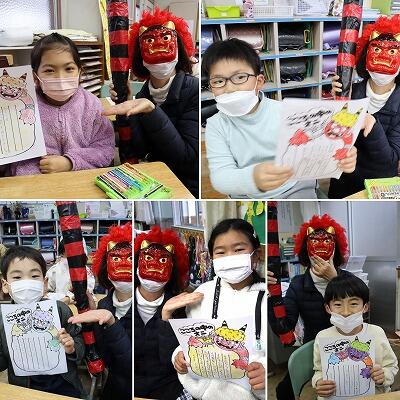 追い出したい心の鬼を書いて、鬼さんと記念撮影。