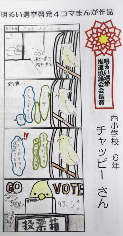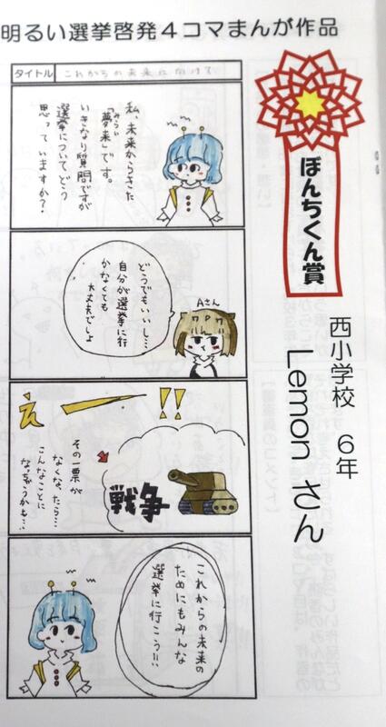 明るい選挙啓発4コマ漫画コンクールで、本校児童が3名も入賞しました。
