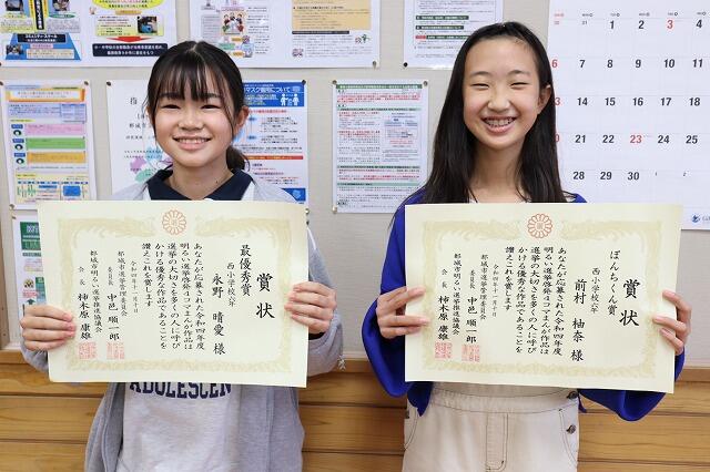 小学校の部、応募総数242点の中から4作品が表彰され、そのうち3名が西小の児童でした。