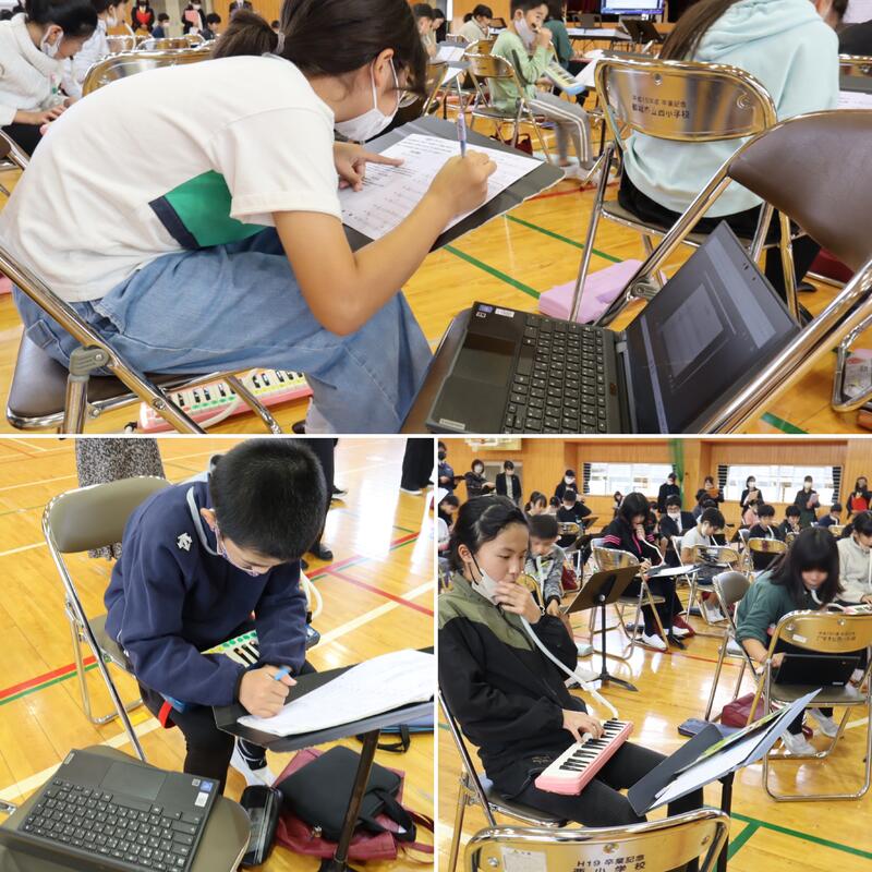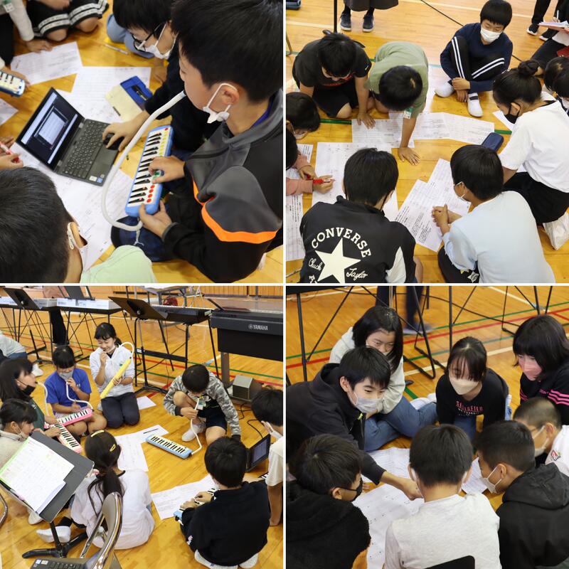 グループで話し合って練習を進め、和音を移り変えて演奏することができました。
