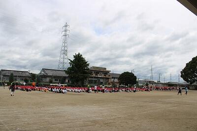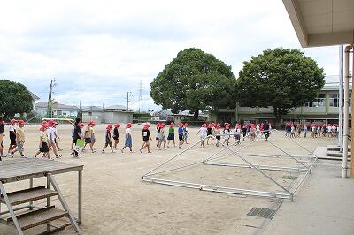 全校児童が、完全無言で校舎から離れた場所に待機しています。