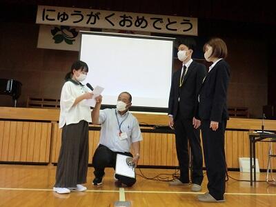 新任式では、6年生 川﨑 桃香 さんが、「西小はとてもいいところなので、早く学校のことを知っていただきたいです。一緒に素敵な西小をつくっていきましょう。」と歓迎のことばを発表してくれました。また、入学式では、来賓として御臨席いただいた 都城市教育委員会文化財課 課長 桑畑 光博 様から、6年生がてきぱきと1年生のお世話する姿に温かさを感じましたとの感想をいただきました。