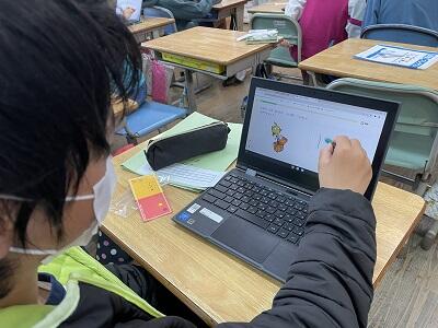 タブレット型端末を持ち帰って、キュビナで宿題をする姿が