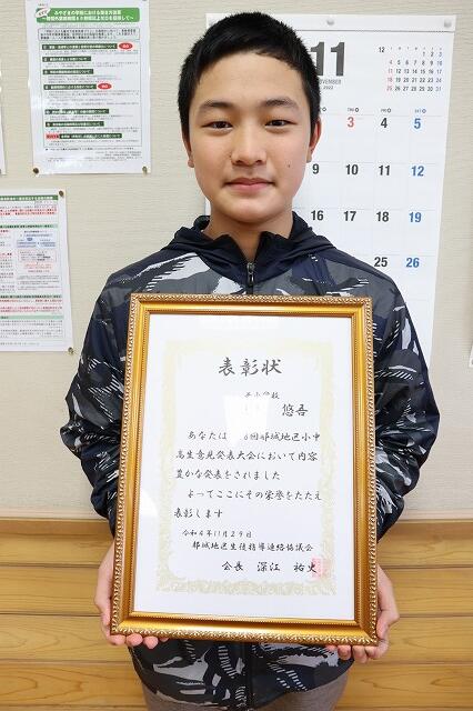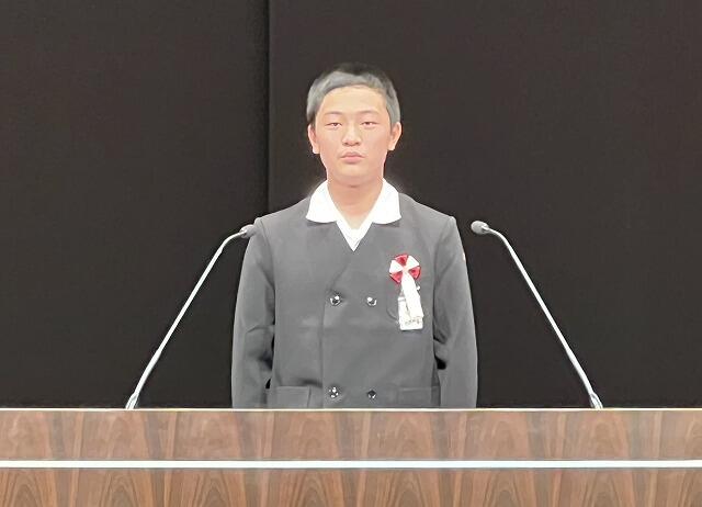 本校を代表して、6年生 重留 悠吾 さんが立派に発表しました。