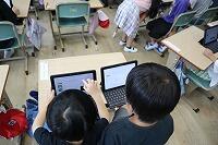 夏休みにはタブレットを持ち帰って学習をするので、1年生もタブレットの学習を頑張っています。