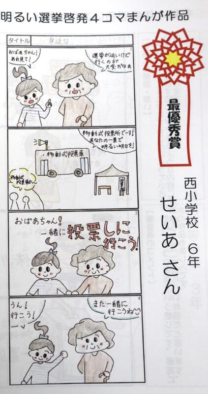 明るい選挙啓発4コマ漫画コンクールで、本校児童が3名も入賞しました。