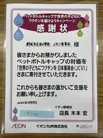 118.2kgありました! 投稿日時 : 2022/04/19 全職員 昨年度JRC委員会が集めたペットボトルキャップ 118.2kgをイオン都城店へお届けしました。 約60人分のワクチンになるそうです。 ご協力ありがとうございました。 Tweet