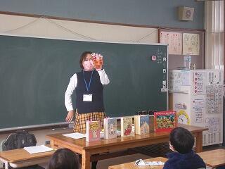 西小には、図書館サポーターの立和名美由紀先生と河村若佐先生がいらっしゃいます。昼の放送での読み聞かせは、子どもたちに大人気です。立和名美由紀先生が、2年4組のみんなにブックトークと手袋シアターをして楽しませてくれました。図書館サポーターの先生のおかげで、図書室を利用する子どもたちが増えています。立和名美由紀先生と河村若佐先生、本好きの西小の子どもたちをつくってくれてありがとうございます。