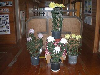 西小学校の玄関に菊を展示しています。蓑原在住の児玉幸郎(元小学校の校長先生)様から、子どもたちの情操教育に役立ててほしいと、菊4鉢を提供していただきました。菊を見ると、「菊作り 菊見るときは 陰の人」という言葉が浮かびます。菊が開花したときは、育てた人は陰になって見守っているという意味です。子育てに通じる美しい言葉です。今月26日(金)まで展示しますので、学校に立ち寄って観賞してみませんか。