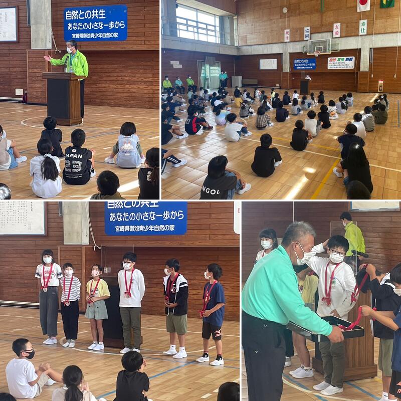 退所式では、追跡ハイキングの表彰式が行われました。