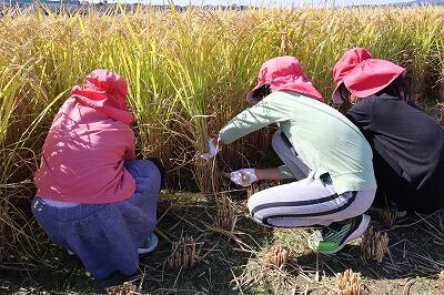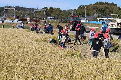 JA五十市青年部の方々の協力を得て、稲刈りが行われました。