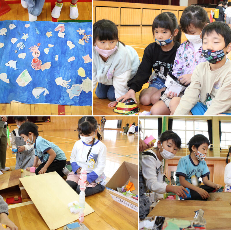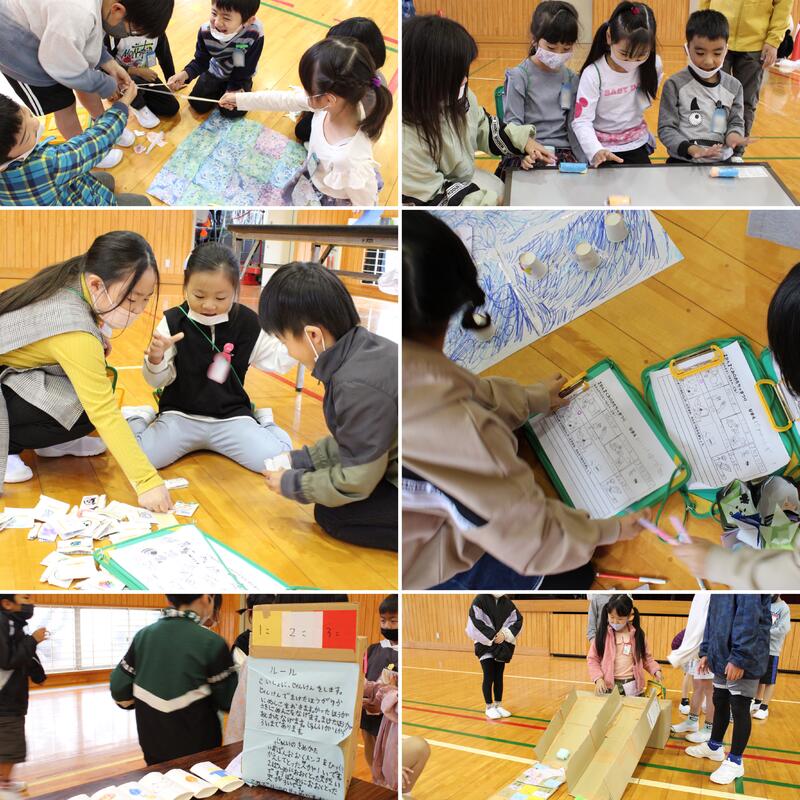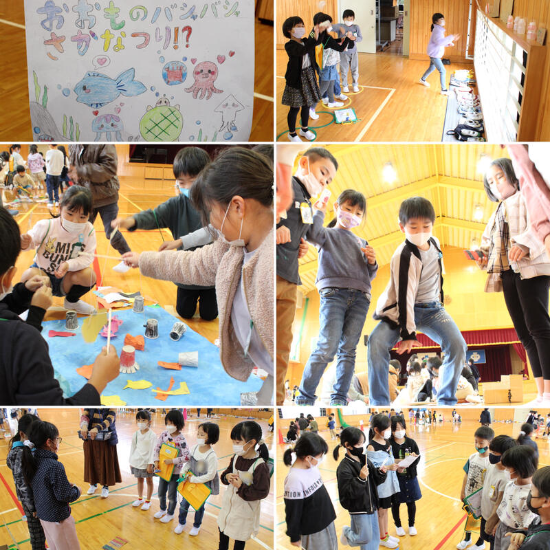 2年生がたくさんの時間をかけて準備したおもちゃや商品で、1年生が楽しく遊んでいます!