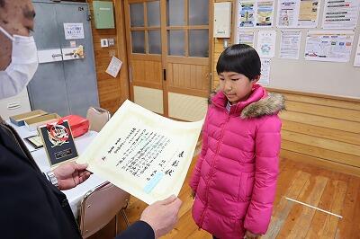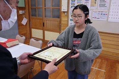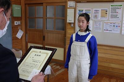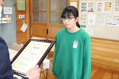 先週は欠席だったため、本日校長室で表彰式を行いました。