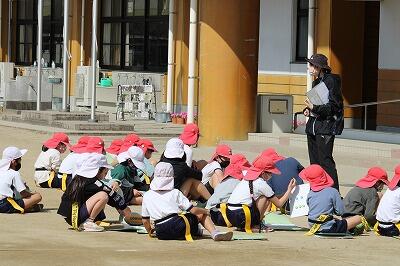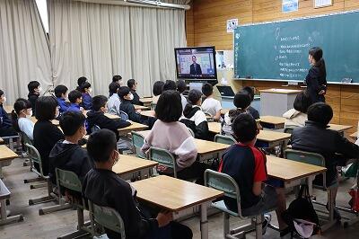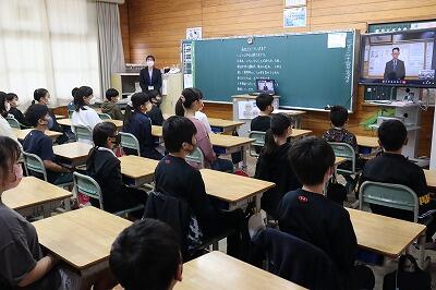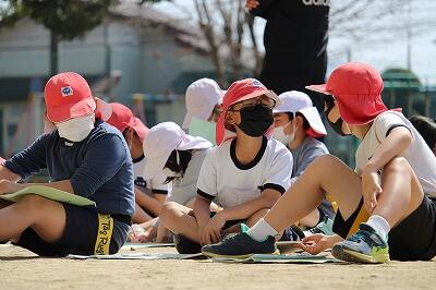 5年生が最上級生です。良い姿勢で真剣に話を聞いていますね!