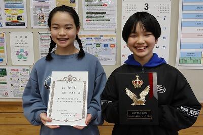 都城西少女バレーボールクラブの6年生8名が入賞の報告に来てくれました。
