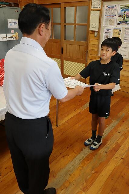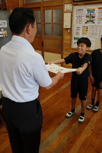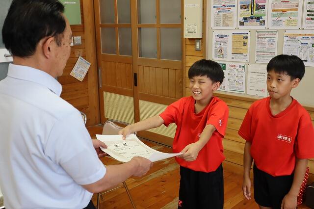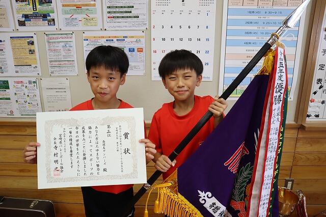 バレーチームの南球友サンバーズに所属する 冨永 琉心さん(6年)、西野 泰心さん(5年)の2名が,「第43回全日本バレーボール小学生大会宮崎県大会」で3位に入賞し、九州大会出場が決まったことを報告に来てくれました。
