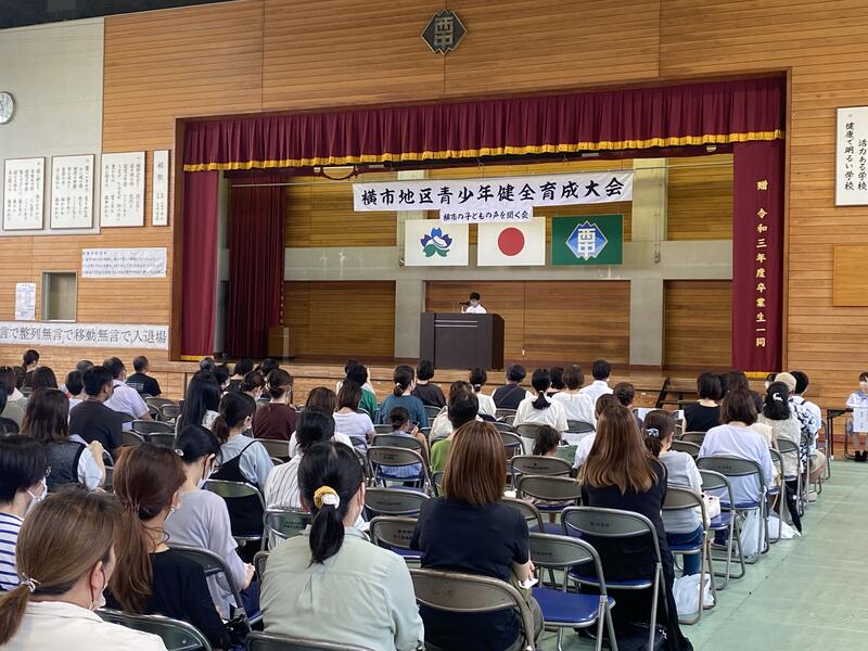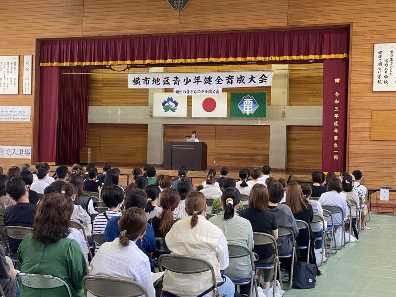 7月9日(日)に、西中学校体育館にて、横市地区青少年健全育成大会「横市の子供の声を聞く会」が開催され、