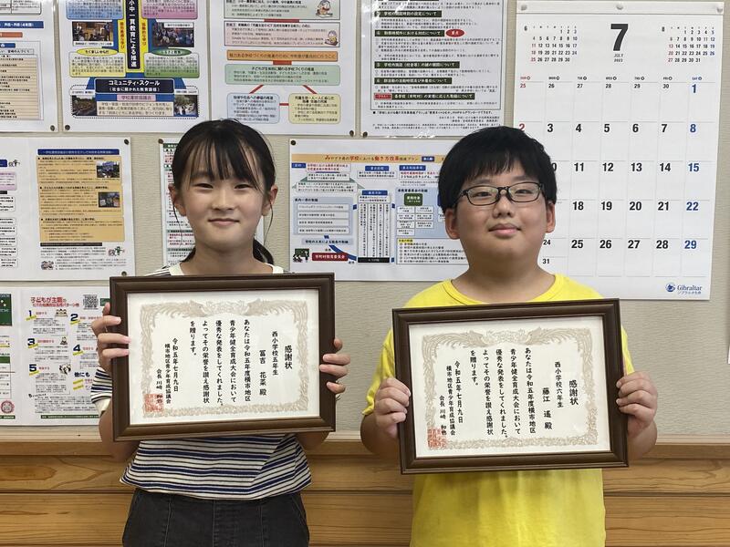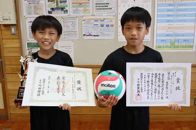 バレーチームの南球友サンバーズに所属する 冨永 琉心さん(6年)、西野 泰心さん(5年)の2名が,7月9日(日)に行われた「教育シューズ杯小学生バレーボール大会」第3位、7月16日(日)に行われた「第21回童夢杯招待バレーボール大会 少年の部」準優勝の報告に来てくれました。