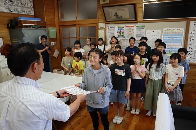 7月18日(火)に贈呈式を行いました。贈呈式には、全校児童を代表して5年4組の児童が参加をしました。そして、児童代表のお礼の言葉を5年4組の三成美嘉さんが発表してくれました。素晴らしい内容のお礼の言葉でした。この贈呈式については、7月20日(木)付けの宮日新聞に掲載されています。