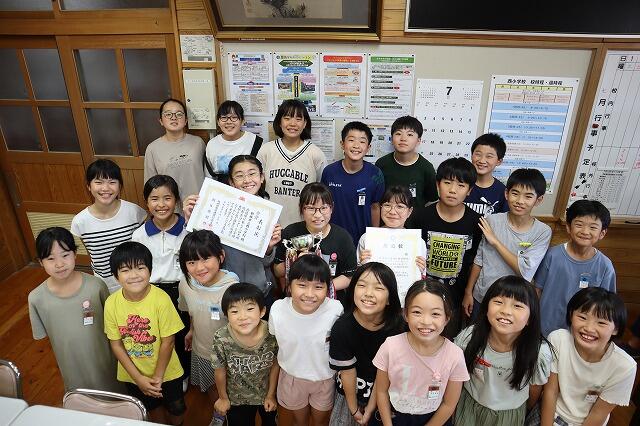 校長先生に改めて表彰していただきました。みんな素敵な笑顔です。