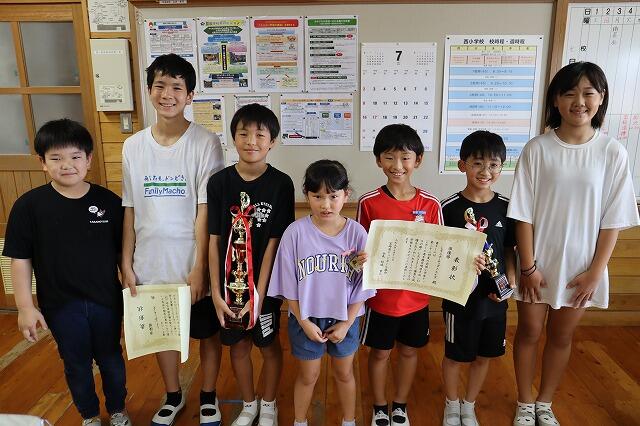 西小学校の児童たちが、またもや九州大会出場を決めました。出場するのは、レインボーキッズ(ドッジボール)のみなさんです。レインボーキッズ(6年生 大津竣介さん、橋元湧さん、木島七海さん 4年生 蒲生賢心郎さん、東叶翔さん、橋本桜我さん 2年生 東さあやさん)の7名が結果の報告に来てくれました。