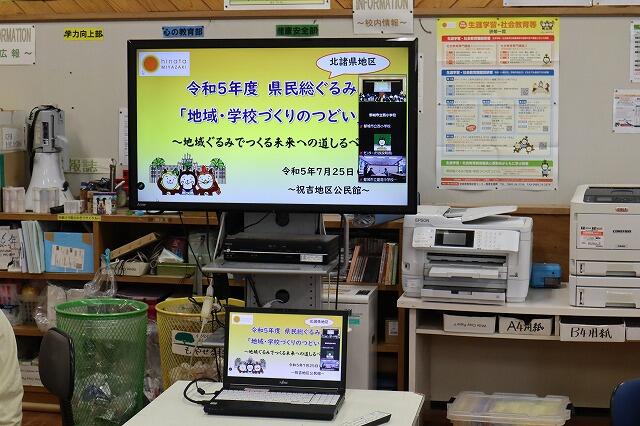 はじめに県民総ぐるみ「地域・学校づくりのつどい」にリモートで参加し、その後、職員と後蓑原の上之浦さん、久味木の森山さん、霧原の長友さん、加治屋の宮之原さん、和田の畑中さん、尻枝の宮園さん、表・馬場のもりさん、都原西の小林さん、尾園さん、都原南の坂田さん、都原自治会の松村さん、主任児童委員の森山さん、荒巻さんで各学年ごとに情報交換を行いました。