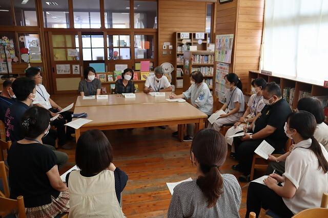 学校運営協議会委員、民生委員・児童委員と学校との懇話会を行いました。この懇話会のねらいは、民生委員・児童委員との情報交換の場を設けることで、学校外での児童の様子を把握し、今後の指導や学校運営に生かすためのものです。この懇話会には、学校運営協議会委員の皆様も参加していただいています。