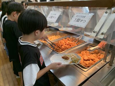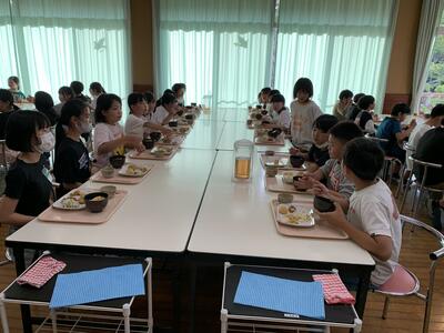 夕食は親子丼や唐揚げなどをいただきました。午後にたくさん活動したので、お腹も空いていたようでした。