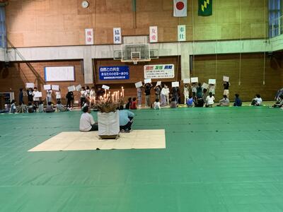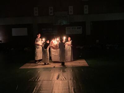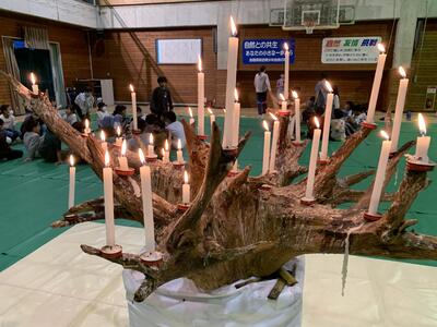 夕食の後は、キャンドルファイヤーでした。第1部は厳かな雰囲気でキャンドルに火を灯しました。そして、第2部では各クラスが出し物を披露して盛り上がりました。思い出に残る一幕となりました。