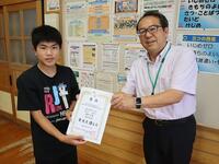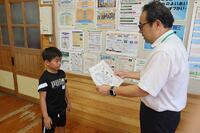 6年生の藤田琉聖さん(WAVE宮崎所属)が、6月23日に行われた第40回日清食品カップ宮崎県小学生陸上競技交流大会の6年生男子100mの部において優勝し、全国大会に出場するということで、報告に来てくれました。