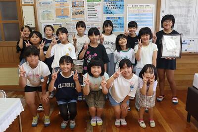 1学期の出席日数は1年生が70日、2~6年生は72日でした。そのうち、1日も休まず登校した子どもは303人でした。