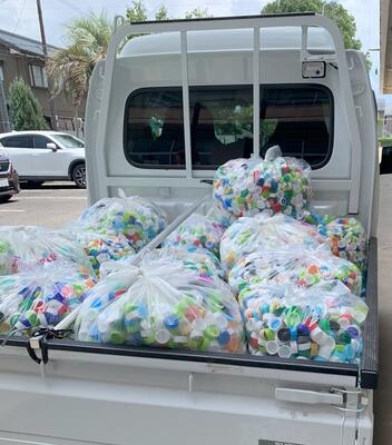 地域の皆様を含め、多くの方のご協力をいただき、たくさんのキャップを回収することができました。