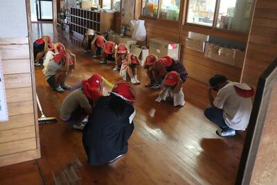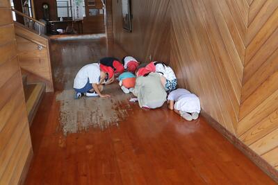 8月に日向灘を震源とする大きな地震がありましたが、いつ地震が起こるか分からないことを想定して、清掃時間中に地震が発生した場合の避難の仕方について訓練しました。