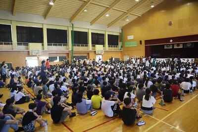 1校時に運動会の結団式を行いました。今年度初めて、800名余りの児童が体育館に集まりました。改めて、西小の児童の多さに驚くとともに、大人数にも関わらず、静かに移動し、結団式を待つことができとても感心しました。