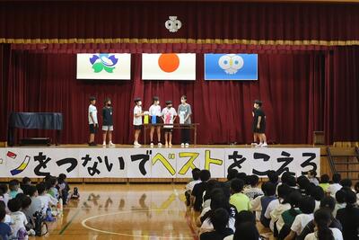 初めに、運動会実行委員がスローガンを発表してくれました。