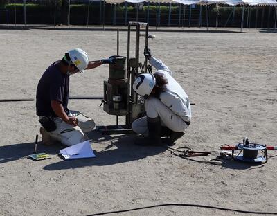 仮設校舎建設のためのボーリング作業