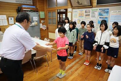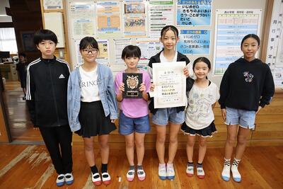 庄内ミニバスケットボールクラブのみなさん(6年:畑中玲愛來さん、5年:川原梨愛さん、宮崎花種さん、橋口綾心さん、前村優月さん、2年:畑中愛麗さん)が入賞報告に来てくれました。