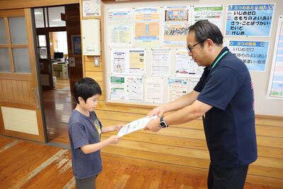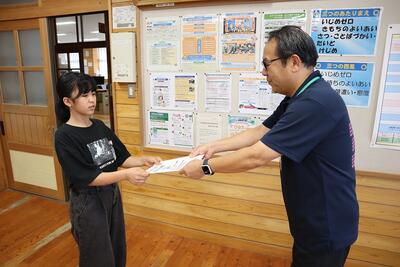 錬心館空手道南横市支部の5年生菊地あかりさんが入賞報告に来てくれました。