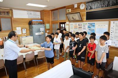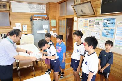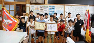 西小野球スポーツ少年団のみなさん(6年生 11名、5年生 4名)が優勝及び県大会出場の報告に来てくれました。