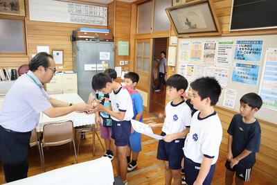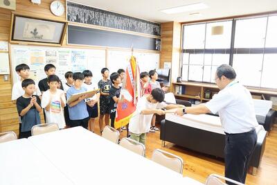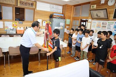 そこで、4つの団の団長に応援賞旗の授与を行いました。