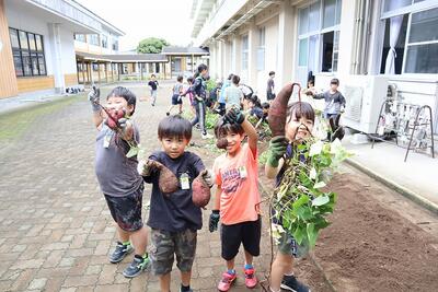 2年生が生活科の学習で1学期に植えたさつまいもの収穫をしました。