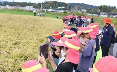 子どもたちは、タブレットで稲の様子を撮影しました。今後学習のまとめをしていくそうです。